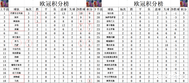 积分榜方面,巴黎,国米和阿森纳继续保持全胜,而且今天三队还都是“狂刷”净胜球,巴黎刷了5个净胜球,他们就凭借1个净胜球优势继续力压国米领跑,阿森纳差国米1个净胜球排在第3。巴萨狂胜止住颓势后,差皇马1个净胜球排在第9,多特,曼城2胜1平保持不败,排在第4,第5。