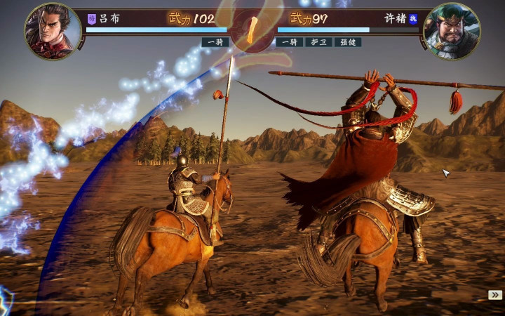 这一代继承了很多9代的优点,喜欢玩玩《三国志9》的大概率会喜欢314。最明显就是武将单挑重新变回随机触发,玩家无法主动挑战。三国粉都懂,阵前挑战单挑是演义为了增加效果编出来的,真正的历史上,双方大将单挑多是在混战中随机碰到的,比如黄忠斩夏侯渊,关羽斩颜良,孙坚斩华雄等。14代的随机单挑和9代的还是有区别,9代基本只是武将之间的武道较量,但是314中混战起来文官也会被对面大将逮住砍了,跟现实一样的残酷,功劳簿上不分文官还是武将。文官带兵出战一定要看好,带远程兵猫后面输出,别近战逞强送人头。