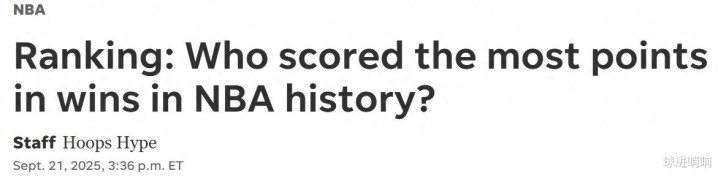詹姆斯第一! 美媒公布NBA胜场得分TOP20: 库里12哈登11乔丹仅第4