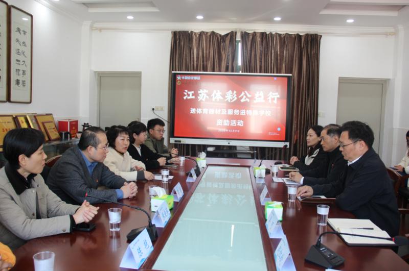 12月9日,由中国体育彩票资助、省发展体育基金会主办的“江苏体彩公益校园行—送体育器材及服务进特殊学校”资助活动在靖江举行。省体育产业指导中心主任吴翔、省发展体育基金会秘书长李薇、靖江市教育局副局长刘云松、靖江市文体广电和旅游局副局长闻海彬、靖江市特殊教育学校党支部书记赵红钦等相关单位负责同志以及受资助学校师生代表参加活动。