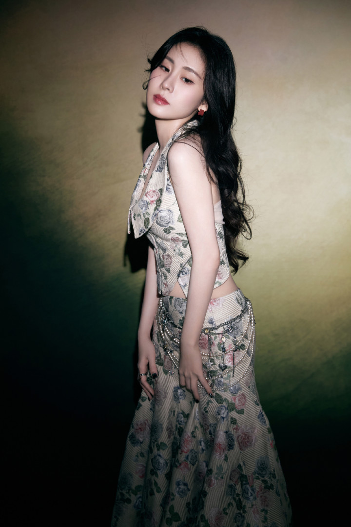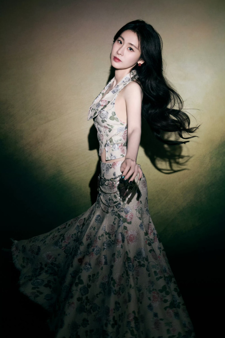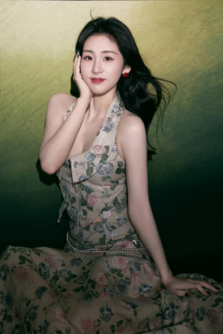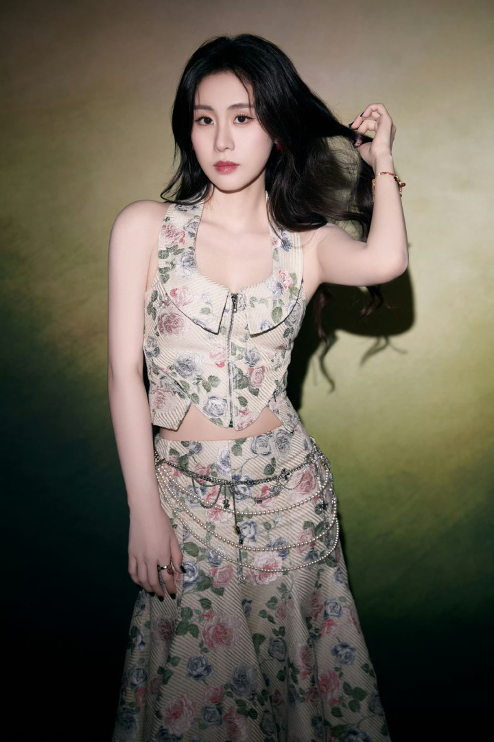 就像这组写真里的玫瑰裙,底色是柔和的米调,花纹是复古的旧玫瑰,偏偏在腰侧缀了冷冽的金属链条,柔与锐、素与奢撞得刚好。这像极了张碧晨本人:台下是趿着拖鞋逛超市的“接地气”,台上是能唱穿云层的“大魔王”;采访里会揉着眼睛说“没睡够”,录音棚里能为一个转音磨三小时。她从不用“精致”武装自己,却在每一个需要发光的时刻,精准地释放出藏在骨血里的绮丽。