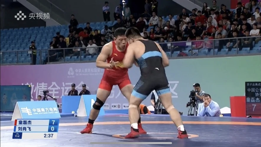 大皖新闻讯 11月13日,第十五届全运会摔跤男子古典式97公斤级比赛在广东清远体育中心体育馆激战正酣。安徽名将童磊杰代表中国公安体育协会出战,凭借高超的技战术水平和出色的发挥斩获铜牌,为职业生涯再添浓墨重彩的一笔。
