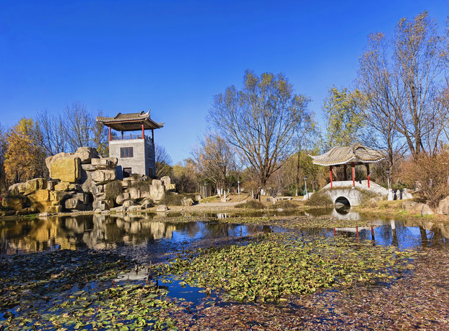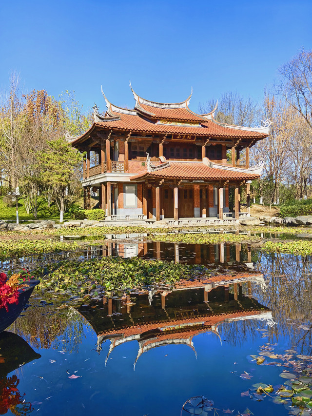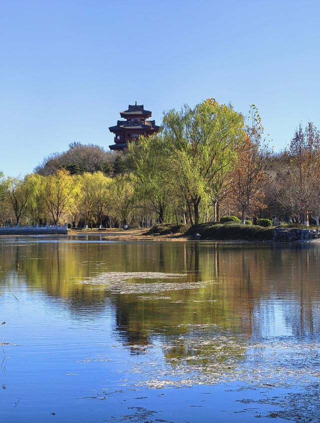 园博园的初冬,是一幅斑斓而静谧的画卷。登高远望,永定塔的飞檐衬着水洗般湛蓝的晴空,视野格外开阔。